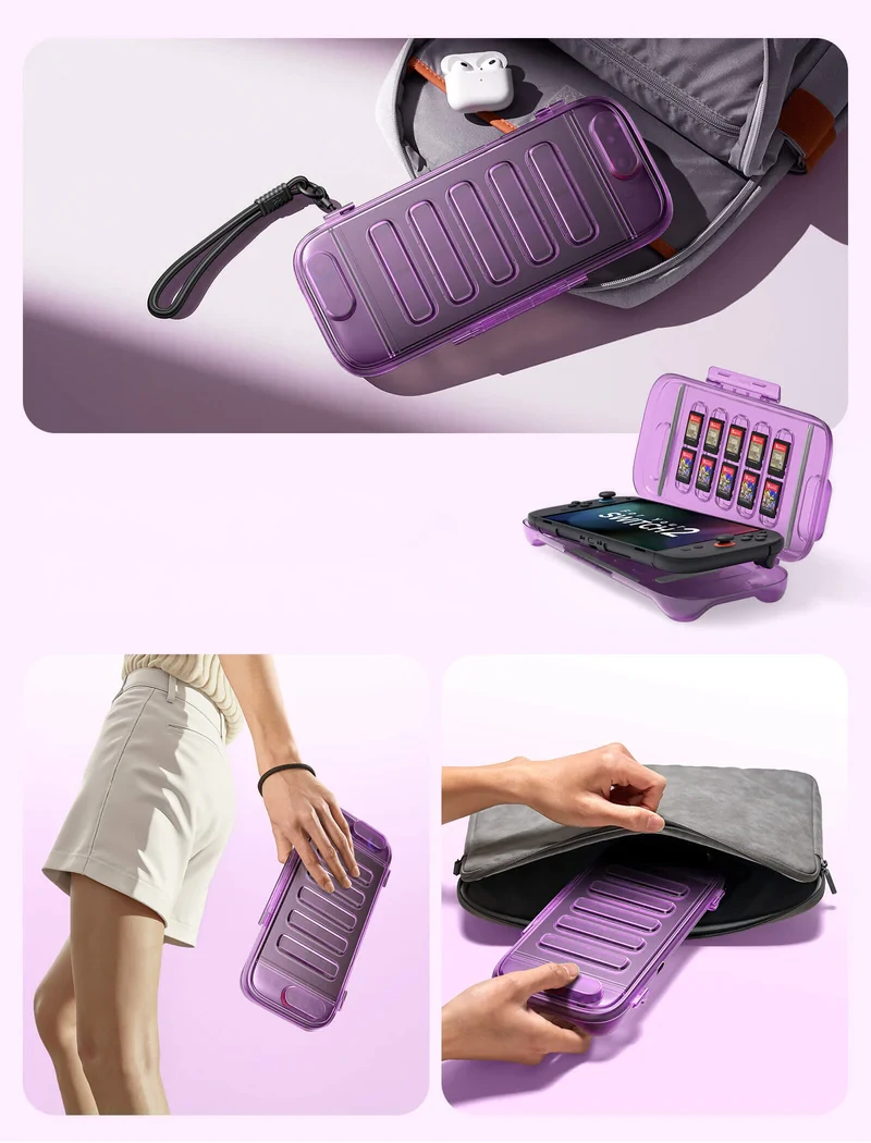 Wewnątrz znajduje się aż do 10 slotów na kartridże z grami – nigdy więcej kombinowania przy pakowaniu się w dłuższą podróż z konsolą. Dodatkowo etui ze względu na swoje kompaktowe rozmiary jest łatwe do schowania w torbie czy plecaku.