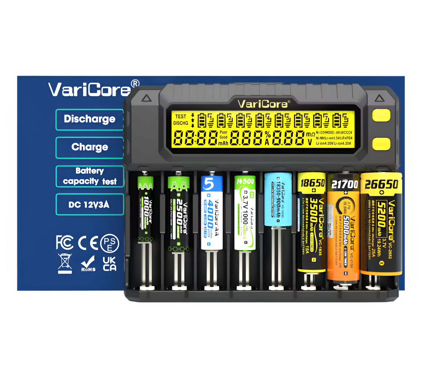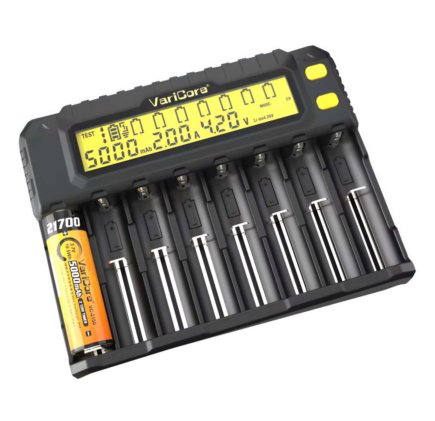 - Model VCP8 umożliwia jednoczesne ładowanie nawet 8 ogniw – idealna do warsztatu, domu, biura i dla każdego, kto korzysta z wielu akumulatorów.