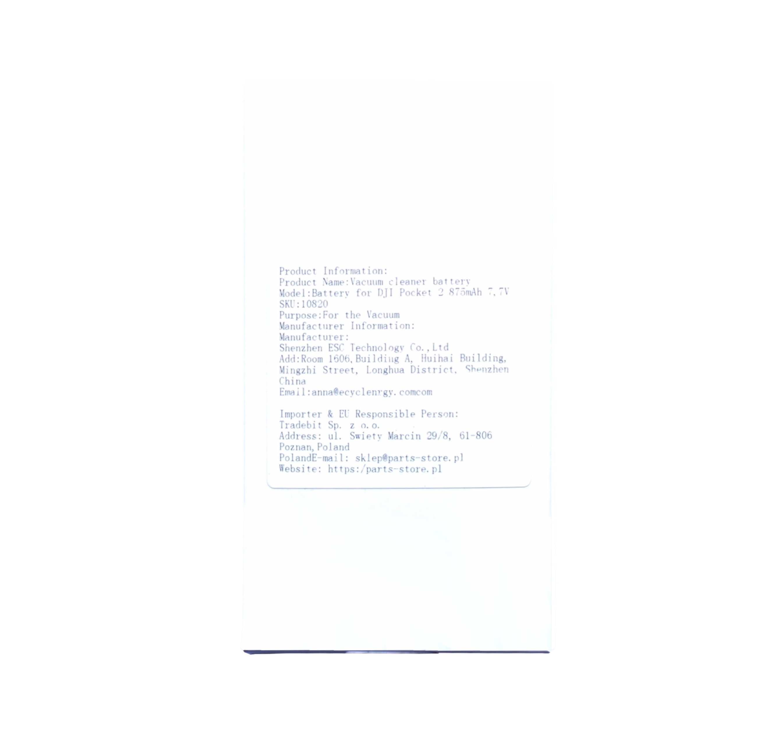 Akumulator 875mAh 7.7V do DJI Osmo Pocket 2 / Pocket 1 służy jako część zamienna przy naprawie urządzenia, gdy fabryczna bateria uległa zużyciu, uszkodzeniu albo utraciła swoją wydajność. To rozwiązanie kierowane głównie do serwisów, techników oraz osób zajmujących się profesjonalną naprawą elektroniki, które potrzebują kompatybilnego ogniwa do przywrócenia sprawności kamery.