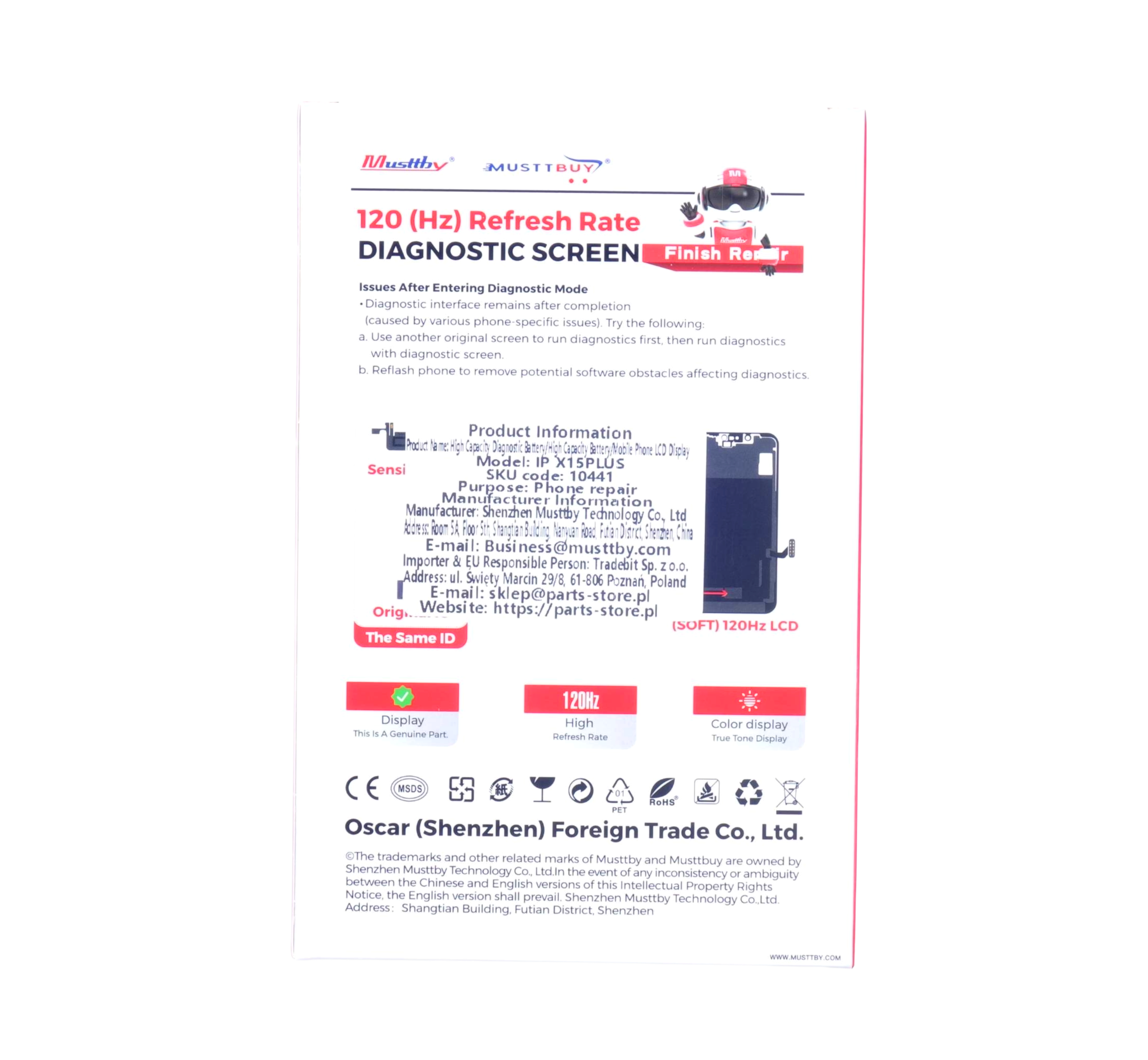 - Klasa jakości: Najwyższej klasy zamiennik, który jest wykrywany przez telefon jako oryginał